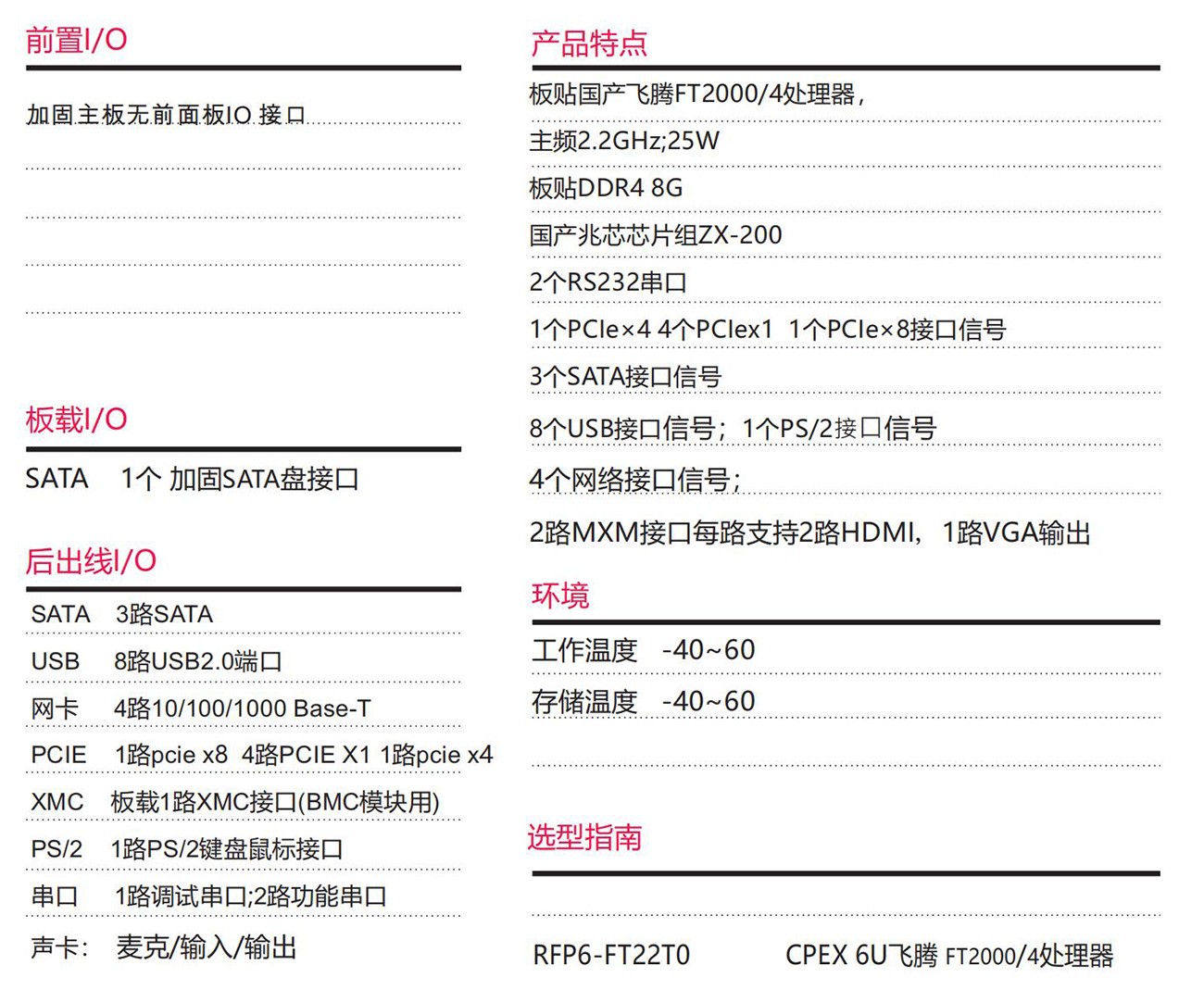 采用國(guó)產(chǎn)飛騰處理器+ZX-200芯片組按國(guó)產(chǎn)化100% 設(shè)計(jì)設(shè)計(jì),6U CPEX規(guī)格。具備豐富的外圍接口;設(shè) 計(jì)了高效的散熱系統(tǒng),可顯著提高處理器的浮點(diǎn)運(yùn)算 性能,以太網(wǎng)、PCIe、支持高帶寬數(shù)據(jù)傳輸,滿足視頻采集與處理、雷達(dá)和聲吶等應(yīng)用對(duì)高速數(shù)據(jù)傳輸?shù)囊蟆閻毫迎h(huán)境使用而設(shè)計(jì),滿足無(wú)人機(jī)、裝甲 車、水面艦艇等軍工領(lǐng)域。